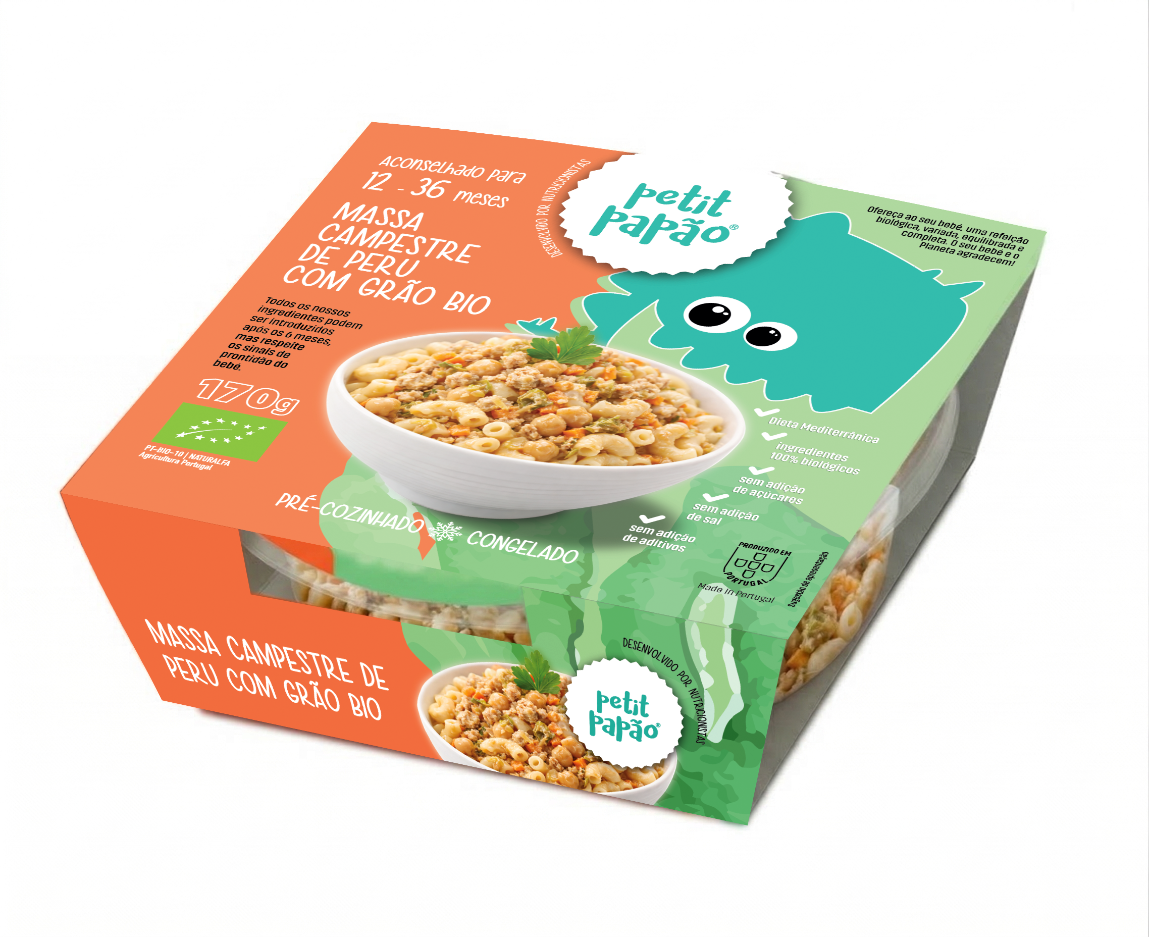 Produto pré-cozinhado à base de massa alimentícia, carne de peru e grão-de-bico